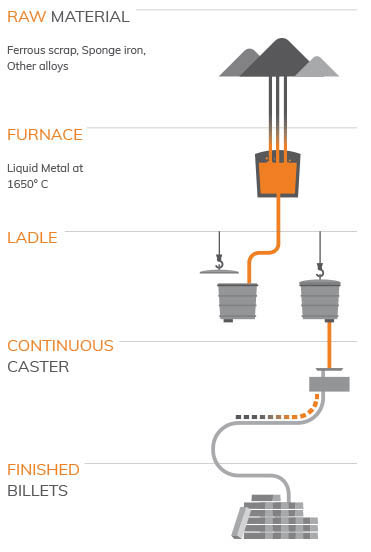 GBR Metals has an in-house steel melting and casting facility to manufacture billets as per the IS 2830:2012 code. Billet made TMT offers significant benefits over traditional ingot made TMT bars in terms of consistency and quality.